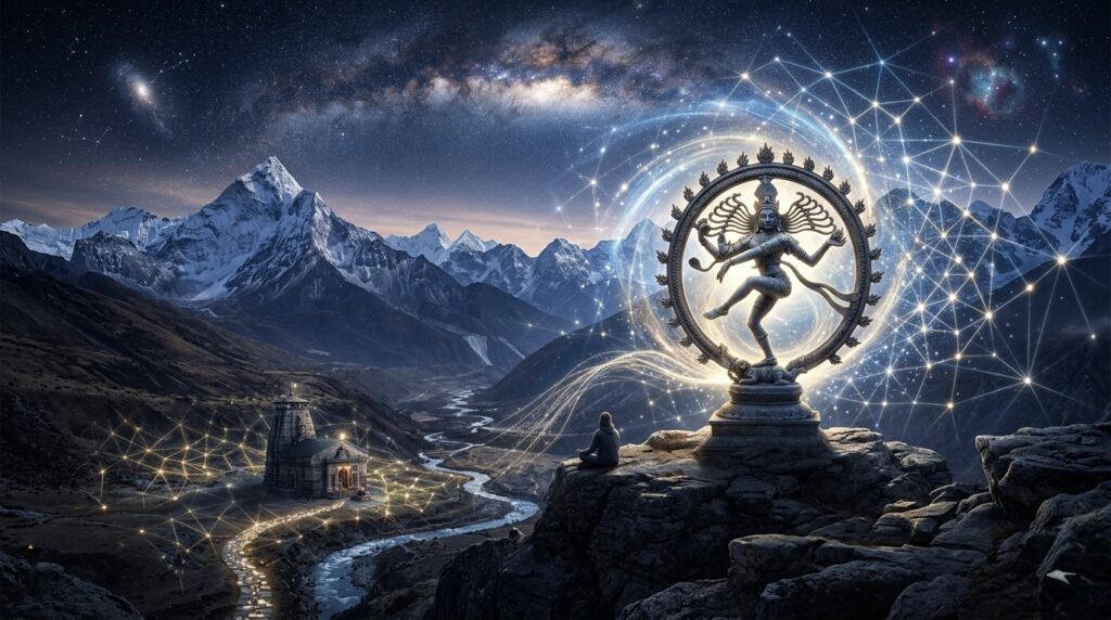 The question is not whether Vedānta “predicted” quantum gravity. It did not. But when modern physics strips away space and time and arrives at a substrate of pure relational information from which geometry is precipitated — Vedānta does not encounter a foreign concept. It encounters, in the language of mathematics, a description of what it has always called Māyā’s operation upon Brahman.