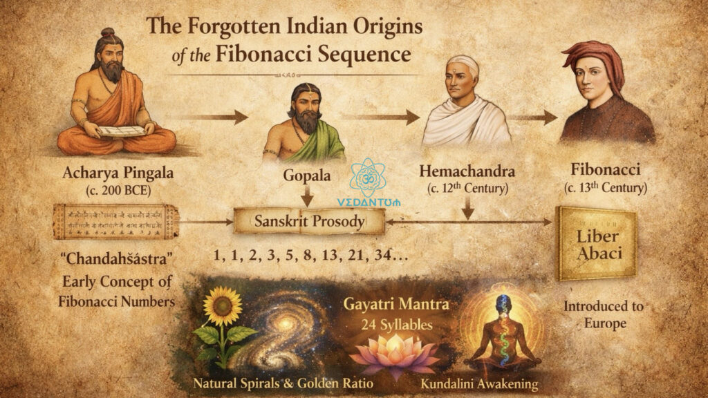 Thus, a numerical principle first discovered while analyzing the rhythm of Sanskrit poetry eventually became one of the most important mathematical patterns used today to understand biological growth, spiral geometry, and cosmic structure.